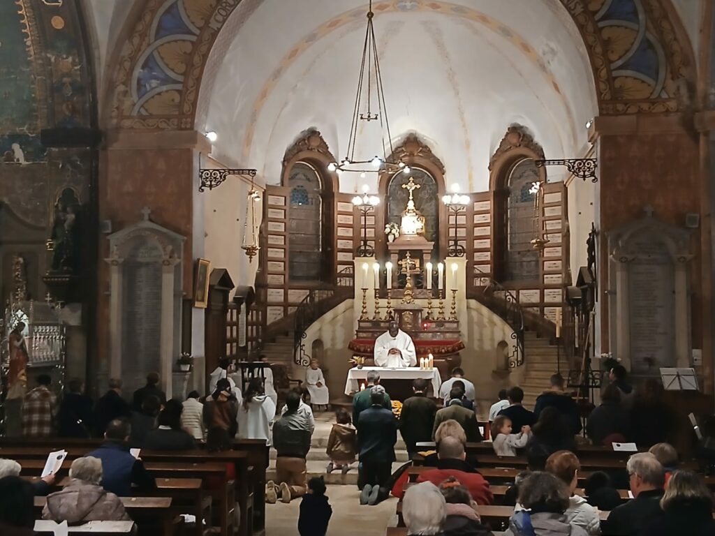 Ce samedi 8 novembre, les coureurs se sont retrouvés à l’église de Velars pour ma messe anticipée. Après avoir reçu leurs t-shirts et médailles miraculeuses, ils ont été bénis par le père Joseph Nkouka.